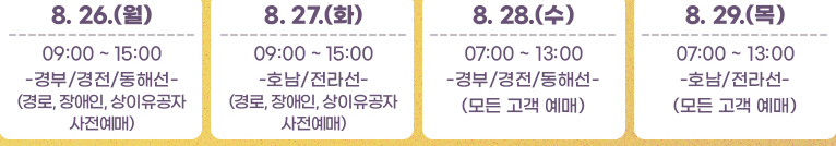 🔸8월 26일(월) ~ 8월 27일(화): 경로·장애인·상이유공자 우선